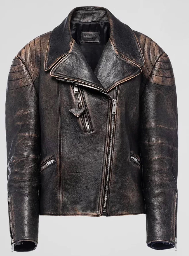 Этот бренд показал косуху из слегка выцветшей кожи и с довольно объемными плечами, призванными увеличить силуэт.