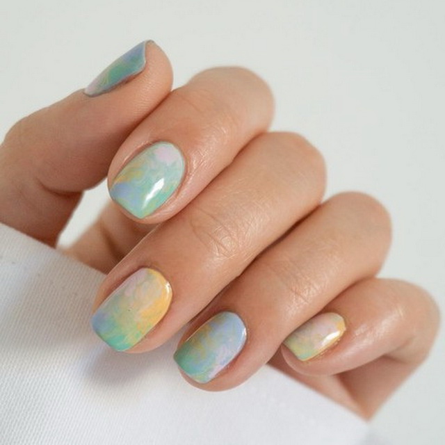Это еще один главный тренд года – нейл-арт с эффектом мрамора.