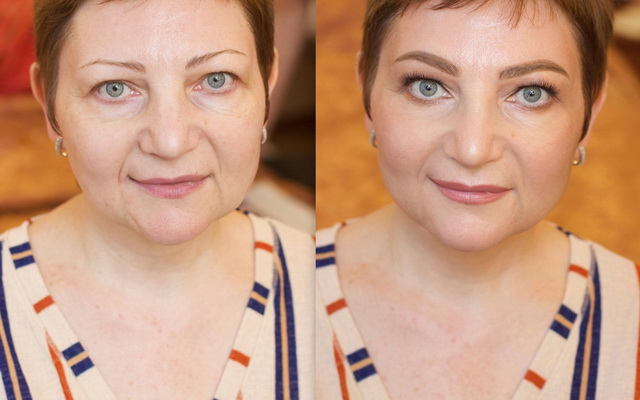 - Следует несколько модифицировать как сам макияж, так и способы его нанесения, чтобы не подчеркивать морщины.