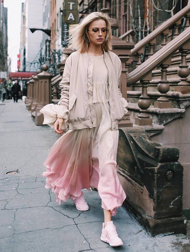 К примеру, поверх длинного зимнего платья можно надеть свитер оверсайз или пиджак, кожаную мотоциклетную куртку или жилет из искусственного меха. Также нельзя упустить возможность создать более нарядный или более повседневный аутфит, просто сменив обувь.