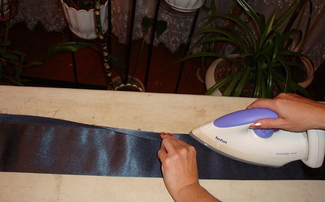 Край отстрачивается по всей длине и по бокам и утюжится.