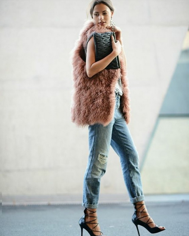 Самые удачные образы с женскими жилетами из искусственного меха: