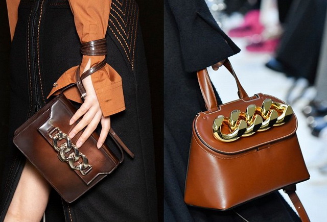 JW Anderson и N°21 взяли всего лишь несколько крупных звеньев и украсили ими клапаны своих ридикюлей. Простое на первый взгляд решение привлекло внимание публики, поэтому можно прогнозировать повышенный спрос на подобные модели.